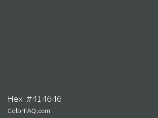 Hex #414646 Color is a dark cyan color and the nearest color is Cape Cod #3c4443. Hex code #414646 and RGB value is rgb(65,70,70). In RGB color space, this color is composed of 25% red, 27% green, 27% blue, In CMYK color space, this color is composed of 7% cyan, 0% magenta, 0% yellow , 73% black , In HSL color space, this color has a hue angle of 180° , 4% saturation and 26% lightness.