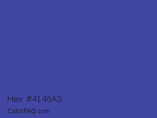 Hex #4146a3 Color is a normal blue color and the nearest color is Violet Blue #324ab2. Hex code #4146a3 and RGB value is rgb(65,70,163). In RGB color space, this color is composed of 25% red, 27% green, 64% blue, In CMYK color space, this color is composed of 60% cyan, 57% magenta, 0% yellow , 36% black , In HSL color space, this color has a hue angle of 237° , 43% saturation and 45% lightness.