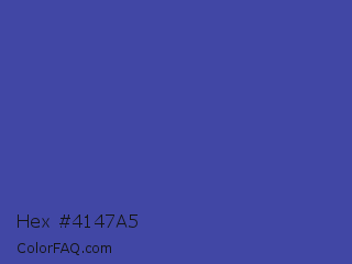 Hex #4147a5 Color is a normal blue color and the nearest color is Violet Blue #324ab2. Hex code #4147a5 and RGB value is rgb(65,71,165). In RGB color space, this color is composed of 25% red, 28% green, 65% blue, In CMYK color space, this color is composed of 61% cyan, 57% magenta, 0% yellow , 35% black , In HSL color space, this color has a hue angle of 236° , 43% saturation and 45% lightness.
