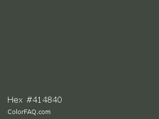 Hex #414840 Color is a dark green color and the nearest color is Cape Cod #3c4443. Hex code #414840 and RGB value is rgb(65,72,64). In RGB color space, this color is composed of 25% red, 28% green, 25% blue, In CMYK color space, this color is composed of 10% cyan, 0% magenta, 11% yellow , 72% black , In HSL color space, this color has a hue angle of 113° , 6% saturation and 27% lightness.