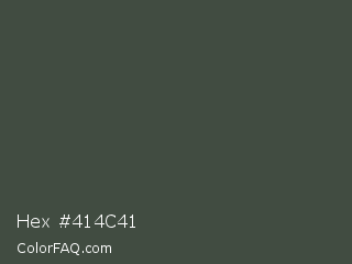 Hex #414c41 Color is a dark green color and the nearest color is Cabbage Pont #3f4c3a. Hex code #414c41 and RGB value is rgb(65,76,65). In RGB color space, this color is composed of 25% red, 30% green, 25% blue, In CMYK color space, this color is composed of 14% cyan, 0% magenta, 14% yellow , 70% black , In HSL color space, this color has a hue angle of 120° , 8% saturation and 28% lightness.
