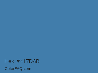 Hex #417dab Color is a normal blue color and the nearest color is Steel Blue #4682b4. Hex code #417dab and RGB value is rgb(65,125,171). In RGB color space, this color is composed of 25% red, 49% green, 67% blue, In CMYK color space, this color is composed of 62% cyan, 27% magenta, 0% yellow , 33% black , In HSL color space, this color has a hue angle of 206° , 45% saturation and 46% lightness.