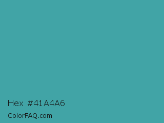 Hex #41a4a6 Color is a normal cyan color and the nearest color is Keppel #3ab09e. Hex code #41a4a6 and RGB value is rgb(65,164,166). In RGB color space, this color is composed of 25% red, 64% green, 65% blue, In CMYK color space, this color is composed of 61% cyan, 1% magenta, 0% yellow , 35% black , In HSL color space, this color has a hue angle of 181° , 44% saturation and 45% lightness.