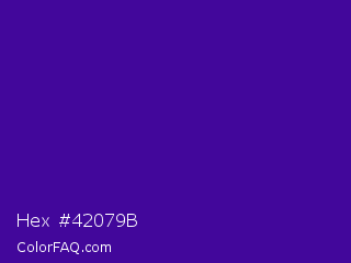 Hex #42079b Color is a normal violet color and the nearest color is Pixie Powder #391285. Hex code #42079b and RGB value is rgb(66,7,155). In RGB color space, this color is composed of 26% red, 3% green, 61% blue, In CMYK color space, this color is composed of 57% cyan, 95% magenta, 0% yellow , 39% black , In HSL color space, this color has a hue angle of 264° , 91% saturation and 32% lightness.