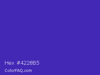 Hex #4228b5 Color is a normal indigo color and the nearest color is Governor Bay #2f3cb3. Hex code #4228b5 and RGB value is rgb(66,40,181). In RGB color space, this color is composed of 26% red, 16% green, 71% blue, In CMYK color space, this color is composed of 64% cyan, 78% magenta, 0% yellow , 29% black , In HSL color space, this color has a hue angle of 251° , 64% saturation and 43% lightness.