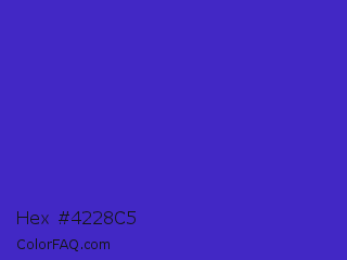 Hex #4228c5 Color is a normal indigo color and the nearest color is Interdimensional Blue #360ccc. Hex code #4228c5 and RGB value is rgb(66,40,197). In RGB color space, this color is composed of 26% red, 16% green, 77% blue, In CMYK color space, this color is composed of 66% cyan, 80% magenta, 0% yellow , 23% black , In HSL color space, this color has a hue angle of 250° , 66% saturation and 46% lightness.