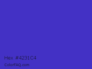Hex #4231c4 Color is a normal indigo color and the nearest color is Ocean Blue #4f42b5. Hex code #4231c4 and RGB value is rgb(66,49,196). In RGB color space, this color is composed of 26% red, 19% green, 77% blue, In CMYK color space, this color is composed of 66% cyan, 75% magenta, 0% yellow , 23% black , In HSL color space, this color has a hue angle of 247° , 60% saturation and 48% lightness.