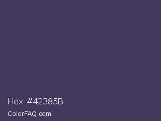 Hex #42385b Color is a dark indigo color and the nearest color is Gun Powder #414257. Hex code #42385b and RGB value is rgb(66,56,91). In RGB color space, this color is composed of 26% red, 22% green, 36% blue, In CMYK color space, this color is composed of 27% cyan, 38% magenta, 0% yellow , 64% black , In HSL color space, this color has a hue angle of 257° , 24% saturation and 29% lightness.