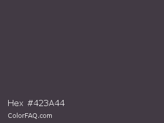 Hex #423a44 Color is a dark purple color and the nearest color is Ship Gray #3e3a44. Hex code #423a44 and RGB value is rgb(66,58,68). In RGB color space, this color is composed of 26% red, 23% green, 27% blue, In CMYK color space, this color is composed of 3% cyan, 15% magenta, 0% yellow , 73% black , In HSL color space, this color has a hue angle of 288° , 8% saturation and 25% lightness.