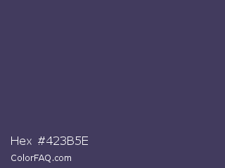 Hex #423b5e Color is a dark indigo color and the nearest color is Gun Powder #414257. Hex code #423b5e and RGB value is rgb(66,59,94). In RGB color space, this color is composed of 26% red, 23% green, 37% blue, In CMYK color space, this color is composed of 30% cyan, 37% magenta, 0% yellow , 63% black , In HSL color space, this color has a hue angle of 252° , 23% saturation and 30% lightness.