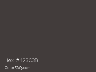 Hex #423c3b Color is a dark red color and the nearest color is Masala #403b38. Hex code #423c3b and RGB value is rgb(66,60,59). In RGB color space, this color is composed of 26% red, 24% green, 23% blue, In CMYK color space, this color is composed of 0% cyan, 9% magenta, 11% yellow , 74% black , In HSL color space, this color has a hue angle of 9° , 6% saturation and 25% lightness.