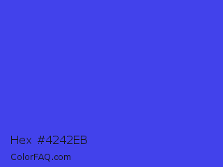 Hex #4242eb Color is a normal blue color and the nearest color is Palatinate Blue #273be2. Hex code #4242eb and RGB value is rgb(66,66,235). In RGB color space, this color is composed of 26% red, 26% green, 92% blue, In CMYK color space, this color is composed of 72% cyan, 72% magenta, 0% yellow , 8% black , In HSL color space, this color has a hue angle of 240° , 81% saturation and 59% lightness.