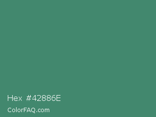 Hex #42886e Color is a normal green color and the nearest color is Viridian #40826d. Hex code #42886e and RGB value is rgb(66,136,110). In RGB color space, this color is composed of 26% red, 53% green, 43% blue, In CMYK color space, this color is composed of 51% cyan, 0% magenta, 19% yellow , 47% black , In HSL color space, this color has a hue angle of 158° , 35% saturation and 40% lightness.