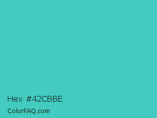 Hex #42cbbe Color is a normal cyan color and the nearest color is Medium Turquoise #48d1cc. Hex code #42cbbe and RGB value is rgb(66,203,190). In RGB color space, this color is composed of 26% red, 80% green, 75% blue, In CMYK color space, this color is composed of 67% cyan, 0% magenta, 6% yellow , 20% black , In HSL color space, this color has a hue angle of 174° , 57% saturation and 53% lightness.