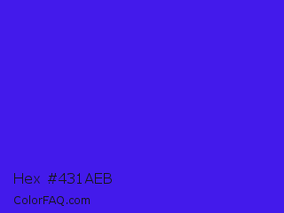 Hex #431aeb Color is a normal indigo color and the nearest color is Han Purple #5218fa. Hex code #431aeb and RGB value is rgb(67,26,235). In RGB color space, this color is composed of 26% red, 10% green, 92% blue, In CMYK color space, this color is composed of 71% cyan, 89% magenta, 0% yellow , 8% black , In HSL color space, this color has a hue angle of 252° , 84% saturation and 51% lightness.