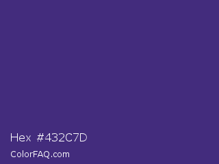 Hex #432c7d Color is a normal indigo color and the nearest color is Minsk #3f307f. Hex code #432c7d and RGB value is rgb(67,44,125). In RGB color space, this color is composed of 26% red, 17% green, 49% blue, In CMYK color space, this color is composed of 46% cyan, 65% magenta, 0% yellow , 51% black , In HSL color space, this color has a hue angle of 257° , 48% saturation and 33% lightness.