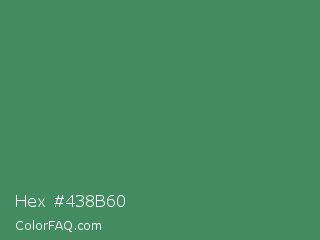 Hex #438b60 Color is a normal green color and the nearest color is Middle Green #4d8c57. Hex code #438b60 and RGB value is rgb(67,139,96). In RGB color space, this color is composed of 26% red, 55% green, 38% blue, In CMYK color space, this color is composed of 52% cyan, 0% magenta, 31% yellow , 45% black , In HSL color space, this color has a hue angle of 144° , 35% saturation and 40% lightness.