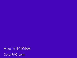 Hex #4405bb Color is a normal violet color and the nearest color is Interdimensional Blue #360ccc. Hex code #4405bb and RGB value is rgb(68,5,187). In RGB color space, this color is composed of 27% red, 2% green, 73% blue, In CMYK color space, this color is composed of 64% cyan, 97% magenta, 0% yellow , 27% black , In HSL color space, this color has a hue angle of 261° , 95% saturation and 38% lightness.