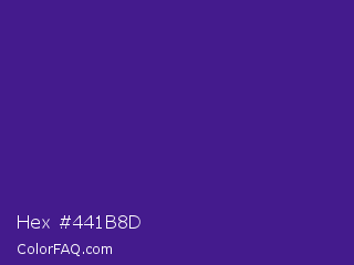 Hex #441b8d Color is a normal violet color and the nearest color is Pixie Powder #391285. Hex code #441b8d and RGB value is rgb(68,27,141). In RGB color space, this color is composed of 27% red, 11% green, 55% blue, In CMYK color space, this color is composed of 52% cyan, 81% magenta, 0% yellow , 45% black , In HSL color space, this color has a hue angle of 262° , 68% saturation and 33% lightness.