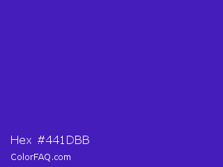 Hex #441dbb Color is a normal indigo color and the nearest color is Interdimensional Blue #360ccc. Hex code #441dbb and RGB value is rgb(68,29,187). In RGB color space, this color is composed of 27% red, 11% green, 73% blue, In CMYK color space, this color is composed of 64% cyan, 84% magenta, 0% yellow , 27% black , In HSL color space, this color has a hue angle of 255° , 73% saturation and 42% lightness.