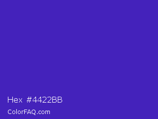 Hex #4422bb Color is a normal indigo color and the nearest color is Interdimensional Blue #360ccc. Hex code #4422bb and RGB value is rgb(68,34,187). In RGB color space, this color is composed of 27% red, 13% green, 73% blue, In CMYK color space, this color is composed of 64% cyan, 82% magenta, 0% yellow , 27% black , In HSL color space, this color has a hue angle of 253° , 69% saturation and 43% lightness.