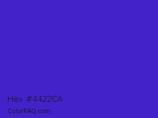 Hex #4422ca Color is a normal indigo color and the nearest color is Interdimensional Blue #360ccc. Hex code #4422ca and RGB value is rgb(68,34,202). In RGB color space, this color is composed of 27% red, 13% green, 79% blue, In CMYK color space, this color is composed of 66% cyan, 83% magenta, 0% yellow , 21% black , In HSL color space, this color has a hue angle of 252° , 71% saturation and 46% lightness.