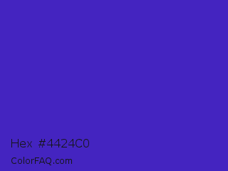 Hex #4424c0 Color is a normal indigo color and the nearest color is Interdimensional Blue #360ccc. Hex code #4424c0 and RGB value is rgb(68,36,192). In RGB color space, this color is composed of 27% red, 14% green, 75% blue, In CMYK color space, this color is composed of 65% cyan, 81% magenta, 0% yellow , 25% black , In HSL color space, this color has a hue angle of 252° , 68% saturation and 45% lightness.