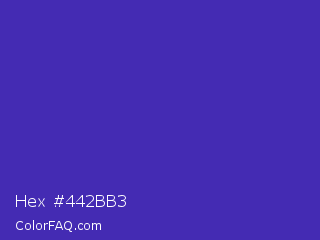 Hex #442bb3 Color is a normal indigo color and the nearest color is Ocean Blue #4f42b5. Hex code #442bb3 and RGB value is rgb(68,43,179). In RGB color space, this color is composed of 27% red, 17% green, 70% blue, In CMYK color space, this color is composed of 62% cyan, 76% magenta, 0% yellow , 30% black , In HSL color space, this color has a hue angle of 251° , 61% saturation and 44% lightness.