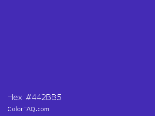 Hex #442bb5 Color is a normal indigo color and the nearest color is Ocean Blue #4f42b5. Hex code #442bb5 and RGB value is rgb(68,43,181). In RGB color space, this color is composed of 27% red, 17% green, 71% blue, In CMYK color space, this color is composed of 62% cyan, 76% magenta, 0% yellow , 29% black , In HSL color space, this color has a hue angle of 251° , 62% saturation and 44% lightness.