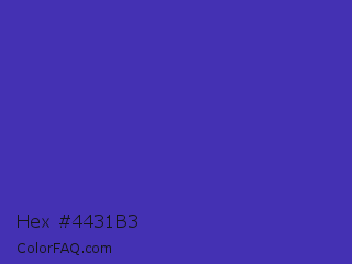 Hex #4431b3 Color is a normal indigo color and the nearest color is Ocean Blue #4f42b5. Hex code #4431b3 and RGB value is rgb(68,49,179). In RGB color space, this color is composed of 27% red, 19% green, 70% blue, In CMYK color space, this color is composed of 62% cyan, 73% magenta, 0% yellow , 30% black , In HSL color space, this color has a hue angle of 249° , 57% saturation and 45% lightness.
