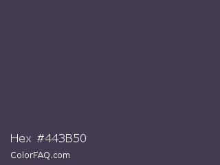 Hex #443b50 Color is a dark violet color and the nearest color is Bright Gray #3c4151. Hex code #443b50 and RGB value is rgb(68,59,80). In RGB color space, this color is composed of 27% red, 23% green, 31% blue, In CMYK color space, this color is composed of 15% cyan, 26% magenta, 0% yellow , 69% black , In HSL color space, this color has a hue angle of 266° , 15% saturation and 27% lightness.