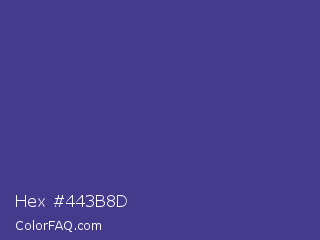 Hex #443b8d Color is a normal indigo color and the nearest color is Dark Slate Blue #483d8b. Hex code #443b8d and RGB value is rgb(68,59,141). In RGB color space, this color is composed of 27% red, 23% green, 55% blue, In CMYK color space, this color is composed of 52% cyan, 58% magenta, 0% yellow , 45% black , In HSL color space, this color has a hue angle of 247° , 41% saturation and 39% lightness.