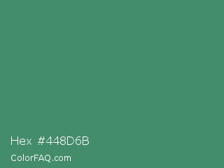 Hex #448d6b Color is a normal green color and the nearest color is Viridian #40826d. Hex code #448d6b and RGB value is rgb(68,141,107). In RGB color space, this color is composed of 27% red, 55% green, 42% blue, In CMYK color space, this color is composed of 52% cyan, 0% magenta, 24% yellow , 45% black , In HSL color space, this color has a hue angle of 152° , 35% saturation and 41% lightness.
