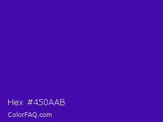Hex #450aab Color is a normal violet color and the nearest color is Daisy Bush #4f2398. Hex code #450aab and RGB value is rgb(69,10,171). In RGB color space, this color is composed of 27% red, 4% green, 67% blue, In CMYK color space, this color is composed of 60% cyan, 94% magenta, 0% yellow , 33% black , In HSL color space, this color has a hue angle of 262° , 89% saturation and 35% lightness.