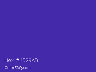 Hex #4529ab Color is a normal indigo color and the nearest color is Daisy Bush #4f2398. Hex code #4529ab and RGB value is rgb(69,41,171). In RGB color space, this color is composed of 27% red, 16% green, 67% blue, In CMYK color space, this color is composed of 60% cyan, 76% magenta, 0% yellow , 33% black , In HSL color space, this color has a hue angle of 253° , 61% saturation and 42% lightness.
