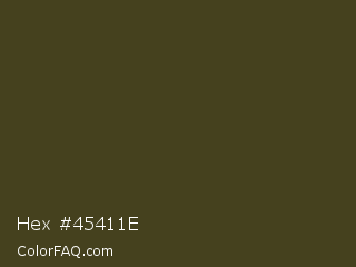Hex #45411e Color is a very dark yellow color and the nearest color is Thatch Green #403d19. Hex code #45411e and RGB value is rgb(69,65,30). In RGB color space, this color is composed of 27% red, 25% green, 12% blue, In CMYK color space, this color is composed of 0% cyan, 6% magenta, 57% yellow , 73% black , In HSL color space, this color has a hue angle of 54° , 39% saturation and 19% lightness.