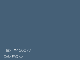 Hex #456077 Color is a normal blue color and the nearest color is Blue Bayoux #496679. Hex code #456077 and RGB value is rgb(69,96,119). In RGB color space, this color is composed of 27% red, 38% green, 47% blue, In CMYK color space, this color is composed of 42% cyan, 19% magenta, 0% yellow , 53% black , In HSL color space, this color has a hue angle of 208° , 27% saturation and 37% lightness.