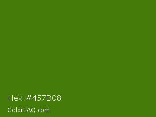 Hex #457b08 Color is a dark green color and the nearest color is Green Leaf #436a0d. Hex code #457b08 and RGB value is rgb(69,123,8). In RGB color space, this color is composed of 27% red, 48% green, 3% blue, In CMYK color space, this color is composed of 44% cyan, 0% magenta, 93% yellow , 52% black , In HSL color space, this color has a hue angle of 88° , 88% saturation and 26% lightness.