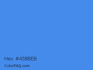 Hex #458beb Color is a normal blue color and the nearest color is Tufts Blue #3e8ede. Hex code #458beb and RGB value is rgb(69,139,235). In RGB color space, this color is composed of 27% red, 55% green, 92% blue, In CMYK color space, this color is composed of 71% cyan, 41% magenta, 0% yellow , 8% black , In HSL color space, this color has a hue angle of 215° , 81% saturation and 60% lightness.