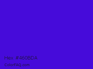 Hex #460bda Color is a normal indigo color and the nearest color is Interdimensional Blue #360ccc. Hex code #460bda and RGB value is rgb(70,11,218). In RGB color space, this color is composed of 27% red, 4% green, 85% blue, In CMYK color space, this color is composed of 68% cyan, 95% magenta, 0% yellow , 15% black , In HSL color space, this color has a hue angle of 257° , 90% saturation and 45% lightness.