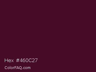 Hex #460c27 Color is a very dark rose color and the nearest color is Barossa #44012d. Hex code #460c27 and RGB value is rgb(70,12,39). In RGB color space, this color is composed of 27% red, 5% green, 15% blue, In CMYK color space, this color is composed of 0% cyan, 83% magenta, 44% yellow , 73% black , In HSL color space, this color has a hue angle of 332° , 71% saturation and 16% lightness.