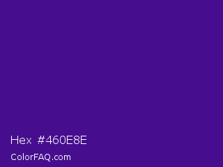 Hex #460e8e Color is a normal violet color and the nearest color is Pixie Powder #391285. Hex code #460e8e and RGB value is rgb(70,14,142). In RGB color space, this color is composed of 27% red, 5% green, 56% blue, In CMYK color space, this color is composed of 51% cyan, 90% magenta, 0% yellow , 44% black , In HSL color space, this color has a hue angle of 266° , 82% saturation and 31% lightness.