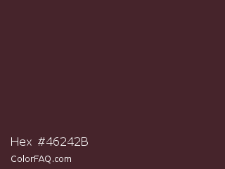 Hex #46242b Color is a very dark red color and the nearest color is Crater Brown #462425. Hex code #46242b and RGB value is rgb(70,36,43). In RGB color space, this color is composed of 27% red, 14% green, 17% blue, In CMYK color space, this color is composed of 0% cyan, 49% magenta, 39% yellow , 73% black , In HSL color space, this color has a hue angle of 348° , 32% saturation and 21% lightness.
