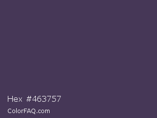 Hex #463757 Color is a dark violet color and the nearest color is Gun Powder #414257. Hex code #463757 and RGB value is rgb(70,55,87). In RGB color space, this color is composed of 27% red, 22% green, 34% blue, In CMYK color space, this color is composed of 20% cyan, 37% magenta, 0% yellow , 66% black , In HSL color space, this color has a hue angle of 268° , 23% saturation and 28% lightness.