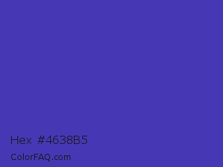 Hex #4638b5 Color is a normal indigo color and the nearest color is Ocean Blue #4f42b5. Hex code #4638b5 and RGB value is rgb(70,56,181). In RGB color space, this color is composed of 27% red, 22% green, 71% blue, In CMYK color space, this color is composed of 61% cyan, 69% magenta, 0% yellow , 29% black , In HSL color space, this color has a hue angle of 247° , 53% saturation and 46% lightness.