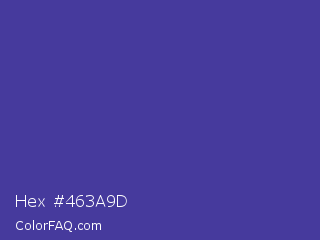 Hex #463a9d Color is a normal indigo color and the nearest color is Gigas #523c94. Hex code #463a9d and RGB value is rgb(70,58,157). In RGB color space, this color is composed of 27% red, 23% green, 62% blue, In CMYK color space, this color is composed of 55% cyan, 63% magenta, 0% yellow , 38% black , In HSL color space, this color has a hue angle of 247° , 46% saturation and 42% lightness.