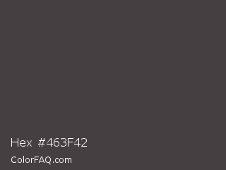 Hex #463f42 Color is a dark rose color and the nearest color is Tundora #4a4244. Hex code #463f42 and RGB value is rgb(70,63,66). In RGB color space, this color is composed of 27% red, 25% green, 26% blue, In CMYK color space, this color is composed of 0% cyan, 10% magenta, 6% yellow , 73% black , In HSL color space, this color has a hue angle of 334° , 5% saturation and 26% lightness.