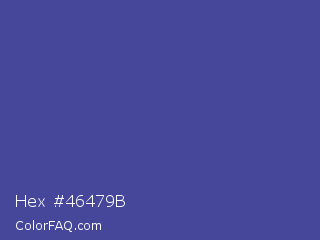 Hex #46479b Color is a normal blue color and the nearest color is Victoria #534491. Hex code #46479b and RGB value is rgb(70,71,155). In RGB color space, this color is composed of 27% red, 28% green, 61% blue, In CMYK color space, this color is composed of 55% cyan, 54% magenta, 0% yellow , 39% black , In HSL color space, this color has a hue angle of 239° , 38% saturation and 44% lightness.