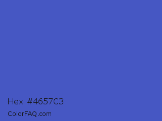 Hex #4657c3 Color is a normal blue color and the nearest color is Indigo #4f69c6. Hex code #4657c3 and RGB value is rgb(70,87,195). In RGB color space, this color is composed of 27% red, 34% green, 76% blue, In CMYK color space, this color is composed of 64% cyan, 55% magenta, 0% yellow , 24% black , In HSL color space, this color has a hue angle of 232° , 51% saturation and 52% lightness.