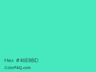 Hex #46e8bd Color is a normal cyan color and the nearest color is Turquoise #40e0d0. Hex code #46e8bd and RGB value is rgb(70,232,189). In RGB color space, this color is composed of 27% red, 91% green, 74% blue, In CMYK color space, this color is composed of 70% cyan, 0% magenta, 19% yellow , 9% black , In HSL color space, this color has a hue angle of 164° , 78% saturation and 59% lightness.